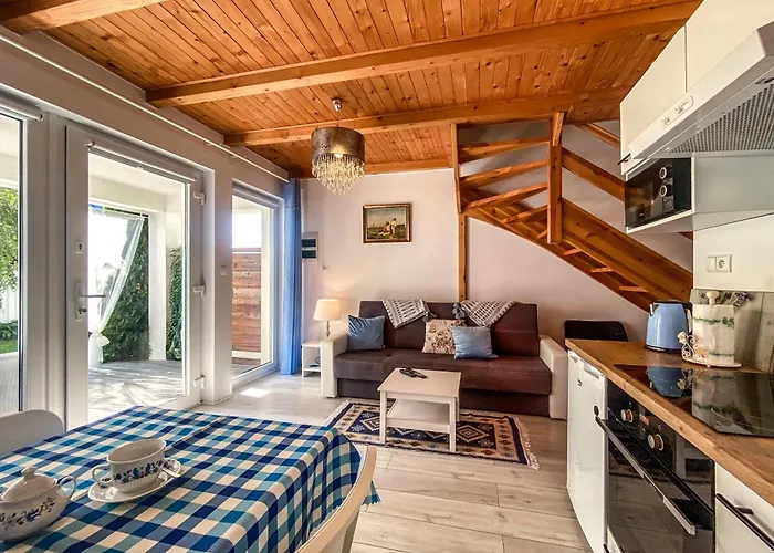 Domki Kurka Wodna Daire dairesinde ufak mutfağın yanı sıra kahve/çay makinesi, oturma alanı, uydu televizyonu içeren odalar bulunmaktadır. Rezerwat "Piasnickie Laki"'a yaklaşık 5 km mesafede bulunan daire, Plaza Debki'a da 1 km uzaklıktadır.